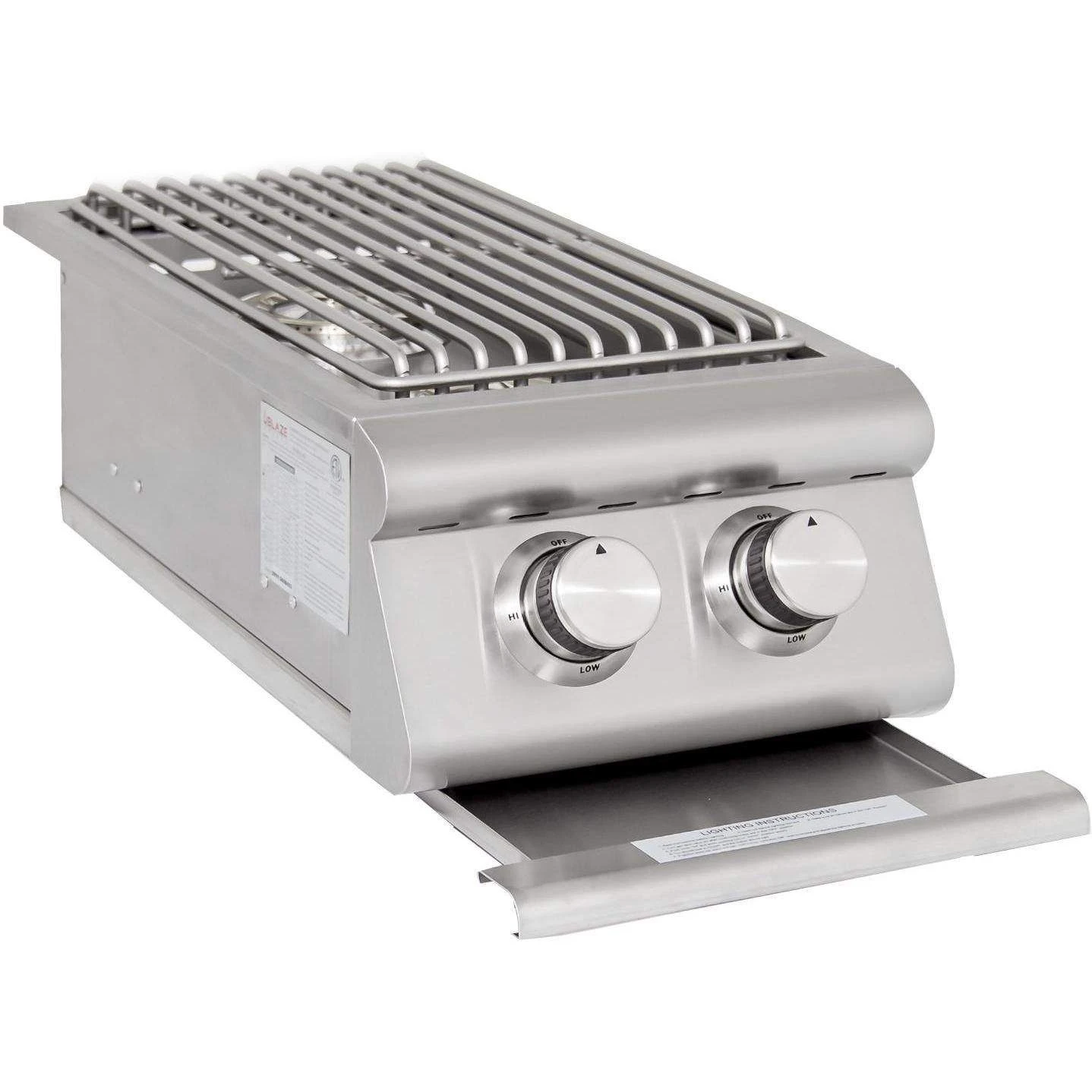 Blaze BLZ-SB2LTE Built-In Double Burner provides a high-performance side burner option to complete the ultimate outdoor kitchen. This unit features a 304 stainless steel construction with smooth welded joints for a blend of style and durability that will stand up to the elements in any climate. Designed for professional-style performance, the two plated brass burners provide 12,000 BTU, capable of high heat or a low simmer for a range of cooking ability. This unit features Blaze’s exclusive signature SRL LED illumination behind the control knobs for an added visual appeal while complementing the Blaze style and offering better night time visibility.