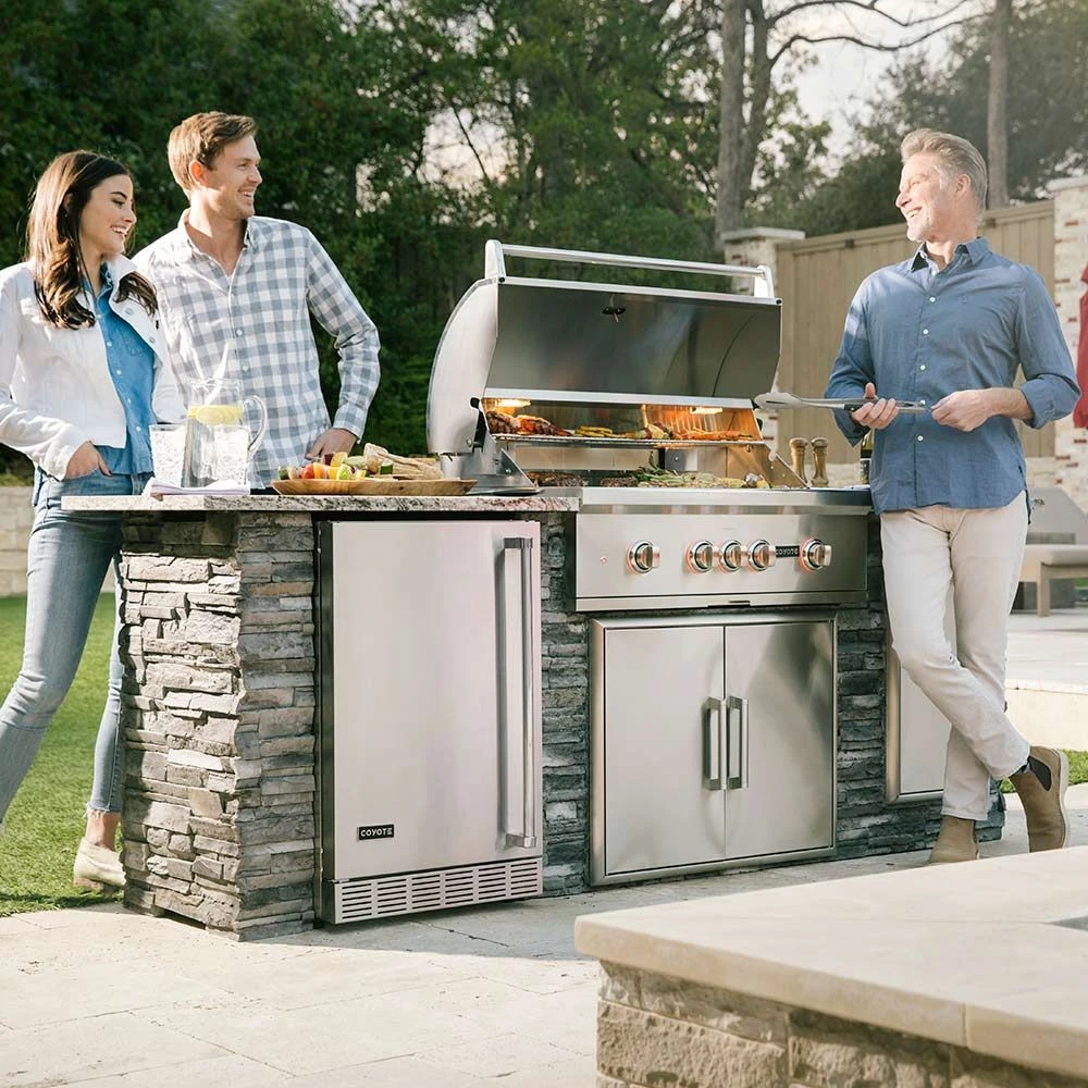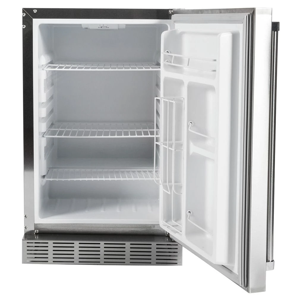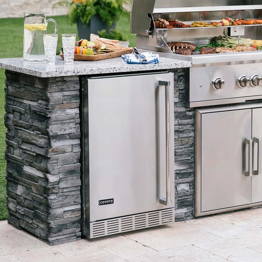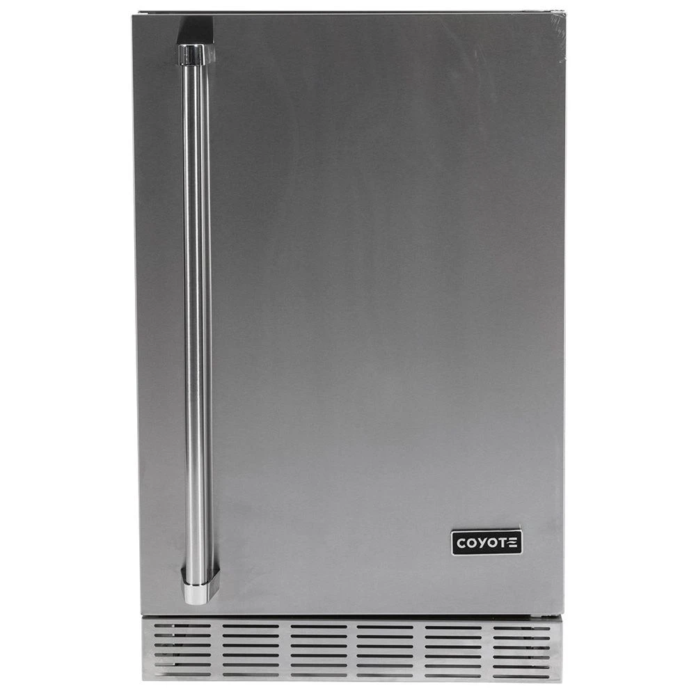 Coyote Stainless Steel Refrigerator, 21-Inch (CBIR) provides a premium refrigeration option for your outdoor space. Featuring UL and DOE certification, this refrigerator has been built to the highest standards to serve you for many years. This refrigerator is available in a right-hinge or left-hinge configuration to meet the needs of your space, while its 304 stainless steel exterior perfectly complements your grill head. Inside the unit, you’ll find a large 4.1-cubic-foot capacity, high-quality adjustable shelving and an automatic defrost design. The all-white interior design offers a clean appearance, while adjustable thermostat control lets you personalize the temperature of the unit.