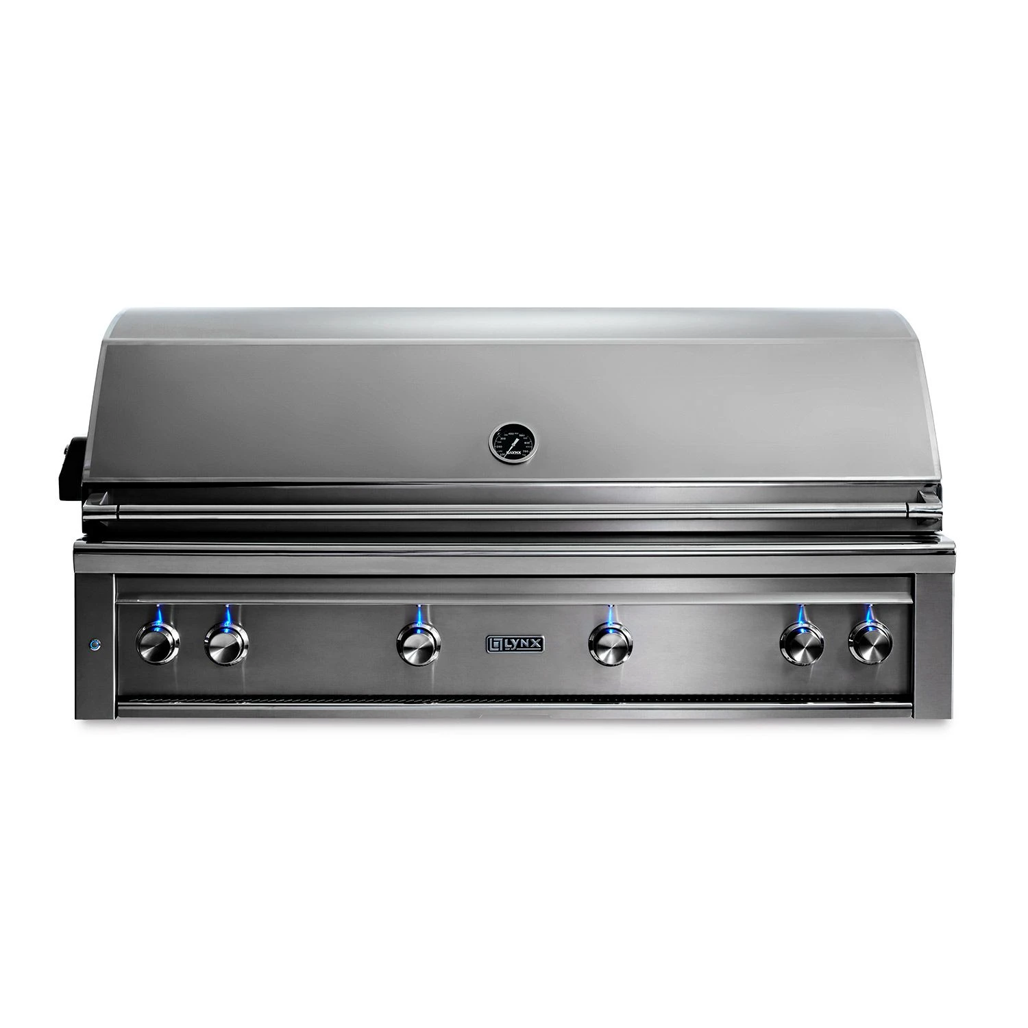 Lynx L54TR Professional Built-In Gas Grill, 54-Inch combines innovative features, unparalleled performance, and superior craftsmanship to create one of the most advanced grills on the market. This BBQ grill features a heavy 16-gauge 304 stainless steel construction with smooth welded joints and polished mirrored edges for a blend of style and durability that will stand up to the elements in any climate. Designed for professional-style performance, the premium ceramic burners provide a whopping 25,000 BTU for extreme high heat output that’s evenly distributed while the ceramic radiant briquettes provide a charcoal-like infrared heat for an enhanced gas grilling experience. With LED backlit control knobs, internal halogen grill lights, a removable smoker box, rotisserie system with infrared rear burner, and a hot-surface ignition, this unit combines all of the requisite features of a high-end grill and then some – so you can create the best barbecue.