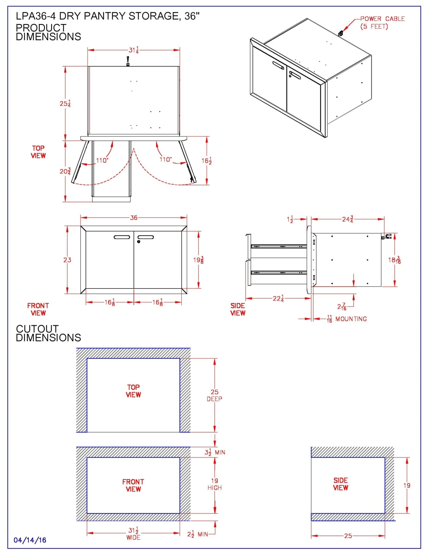 Lynx LPA36-4 Ventana Dry Storage Double Door Sealed Pantry, 36×23-Inch provides a high quality outdoor kitchen component to complete your ultimate outdoor BBQ paradise. This unit features a heavy 16-gauge 304 stainless steel construction with smooth welded joints for a blend of style and durability that will stand up to the elements in any climate. The double access doors open to reveal a completely sealed storage cavity that features a magnetic gasket to ensure a tight seal and protect cookware or dry goods from pests and weather. The built in cabinet features integrated lighting to make finding and retrieving items easy while the locking door keeps contents secured inside. The Ventana style flush mount door handle and heavy duty latch provide a secure closure to keep the contents safely within. The entire line of Lynx Professional outdoor kitchen equipment features the same polished stainless construction for a matching stylized look to transport your kitchen outdoors.