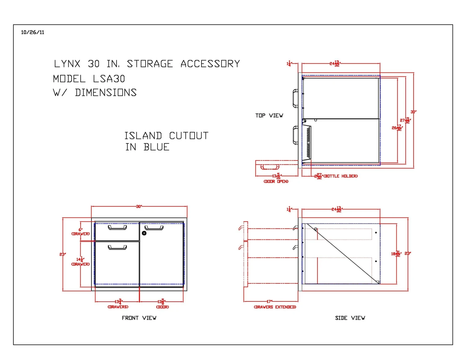 Lynx LSA30 Professional Access Door And Double Drawer Combo, 30×23-Inch provides a high quality outdoor kitchen component to complete your ultimate outdoor BBQ paradise. This unit features a heavy 16-gauge 304 stainless steel construction with smooth welded joints for a blend of style and durability that will stand up to the elements in any climate. The single access door and double drawer combination provides a versatile range of storage options; the drawers are fully enclosed and feature full extension glides to allow easy viewing and retrieval of contents while the access door is perfect for a garbage can, LP tank, or larger grilling accessories and includes a removable condiment tray. The built in cabinet features integrated lighting to make finding and retrieving items easy while the locking door keeps contents secured inside. The professional-style door handle and heavy duty latch provide a secure closure to keep the contents safely within. The entire line of Lynx Professional outdoor kitchen equipment features the same polished stainless construction for a matching stylized look to transport your kitchen outdoors.