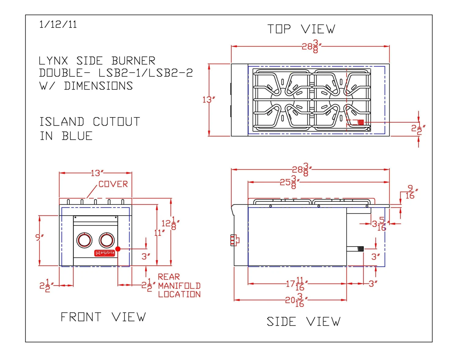 Lynx LSB2-2 Built-In Double Side Burner, 13-Inch provides a high performance side burner option to complete the ultimate outdoor kitchen. This unit features a heavy 16-gauge 304 stainless steel construction with smooth welded joints and polished mirrored edges for a blend of style and durability that will stand up to the elements in any climate. Designed for professional-style performance, the two brass burners provide a whopping 15,000 BTU each, capable of intense high heat or a low simmer for a range of cooking ability. The burners and burner basin are sealed and easy to clean while the LED backlit control knobs and a hot-surface ignition combine to offer one of the most versatile outdoor cooking units on the market.