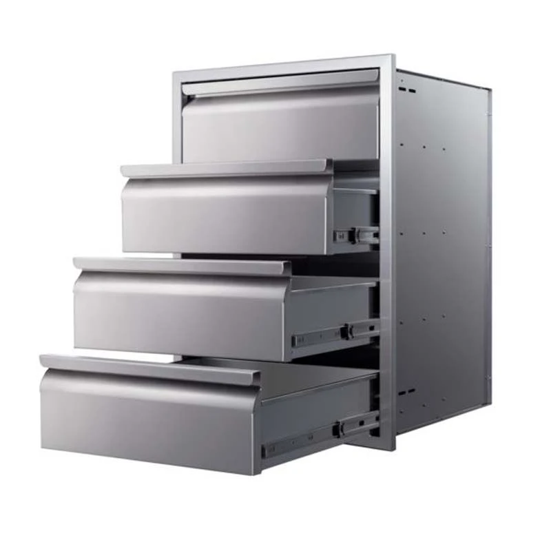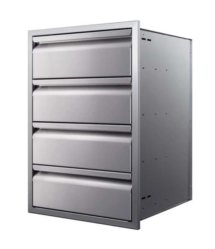 This quadruple access drawer unit offers an easy upgrade for your outdoor kitchen. The convenient four-drawer design offers ample room for BBQ tools, while the heavy-duty build quality of this unit can support up to 100 pounds.