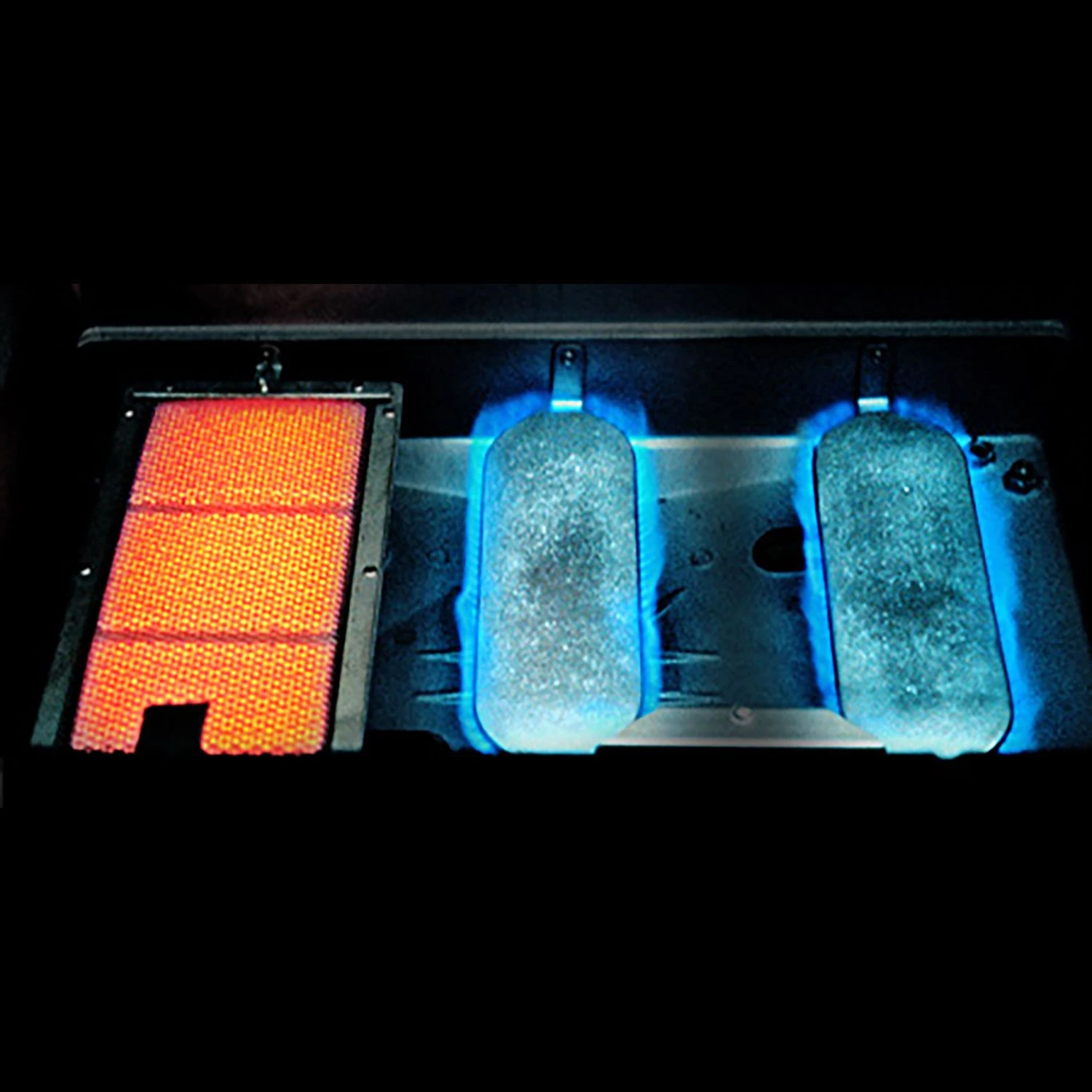 - Hybrid Burners – With 48,000 BTU capability, the 2 cast stainless steel/1 infrared burner combo provides superior versatility