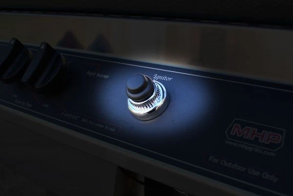 Modern Home Products WHRG4 Hybrid Gas Grill with SearMagic Grids On Cart, 27-Inch offers a premium built-in gas grill option that combines hand-crafted, high quality materials with superior function and timeless tradition. The grill features cast aluminum construction to provide a durable housing and grill bottom that promotes heat retention and rust resistance while the rolling Sta-Kool stainless steel hood handle makes opening your grill a breeze. This unit includes aluminum rust-free SearMagic grids and a stainless steel swing-away warming rack. The reversible SearMagic technology is characterized by one wide-ribbed side for achieving professional sear lines and one smooth side for foods such as fish or vegetables. The hybrid burner system consists of 2 cast stainless steel oval burners and 1 ceramic infrared burner that works together with the FlavorMaster porcelain briquettes to create 48,000 BTU of power and adds a high performance searing option for improved grilling flexibility. The on-cart grilling option offers the 27-inch gas grill head on a freestanding aluminum cart with two wheels. You also have the option to pair your grill with a 4-wheeled (2 casters) black aluminum or stainless steel column. All of this, in addition to two added stainless steel side shelves, the 433 square inches of main cooking area and built-in temperature gauge, makes it is easy to see why the WHRG4 from MHP is an ideal grilling option for anyone who enjoys different grilling methods. Upgrade your grill with a SearMagic Infrared Zone Side Burner, Stainless Steel Side Burner or Infra-Roast Rear Rotisserie Burner.