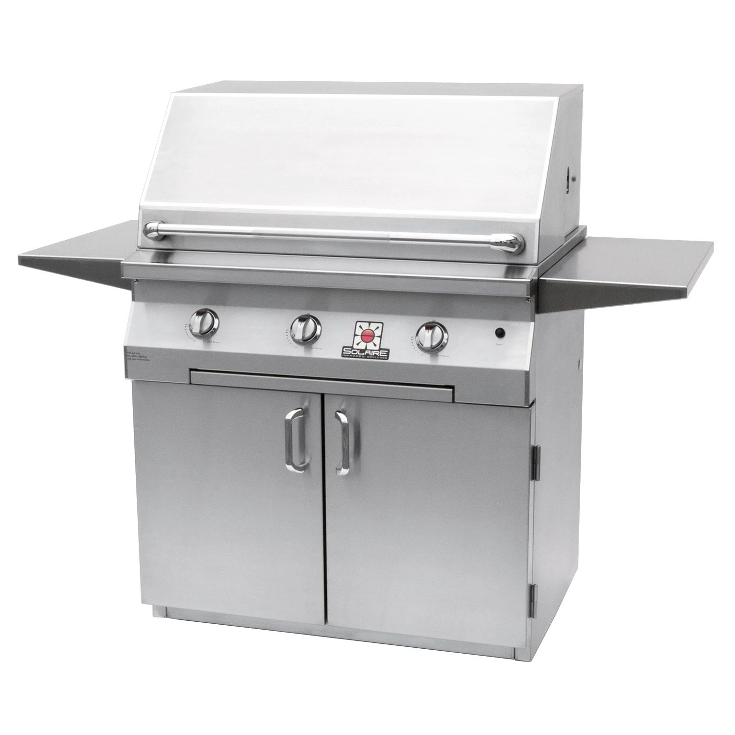 Solaire IRBQ-36 36-Inch Freestanding Grill on 2-Door Cart provides a professional quality infrared grill designed to offer an improved backyard grilling experience. Featuring three main infrared burners capable of up to 74,000 BTU, this grill offers impressive heating ability across 560 square inches of main grilling area and a total grilling area of 813 square inches. Select from all infrared or InfraVection burner configurations to match your grilling needs. Your grilling experience can be further enhanced with Solaire’s large assortment of grilling accessories engineered to help you grill to your full potential (sold separately). As an added bonus, this grill features a limited lifetime warranty on all stainless steel construction, main burners, and V-grilling grids as well as a two-year warranty on its ignition system and a one-year warranty on nearly all other parts.