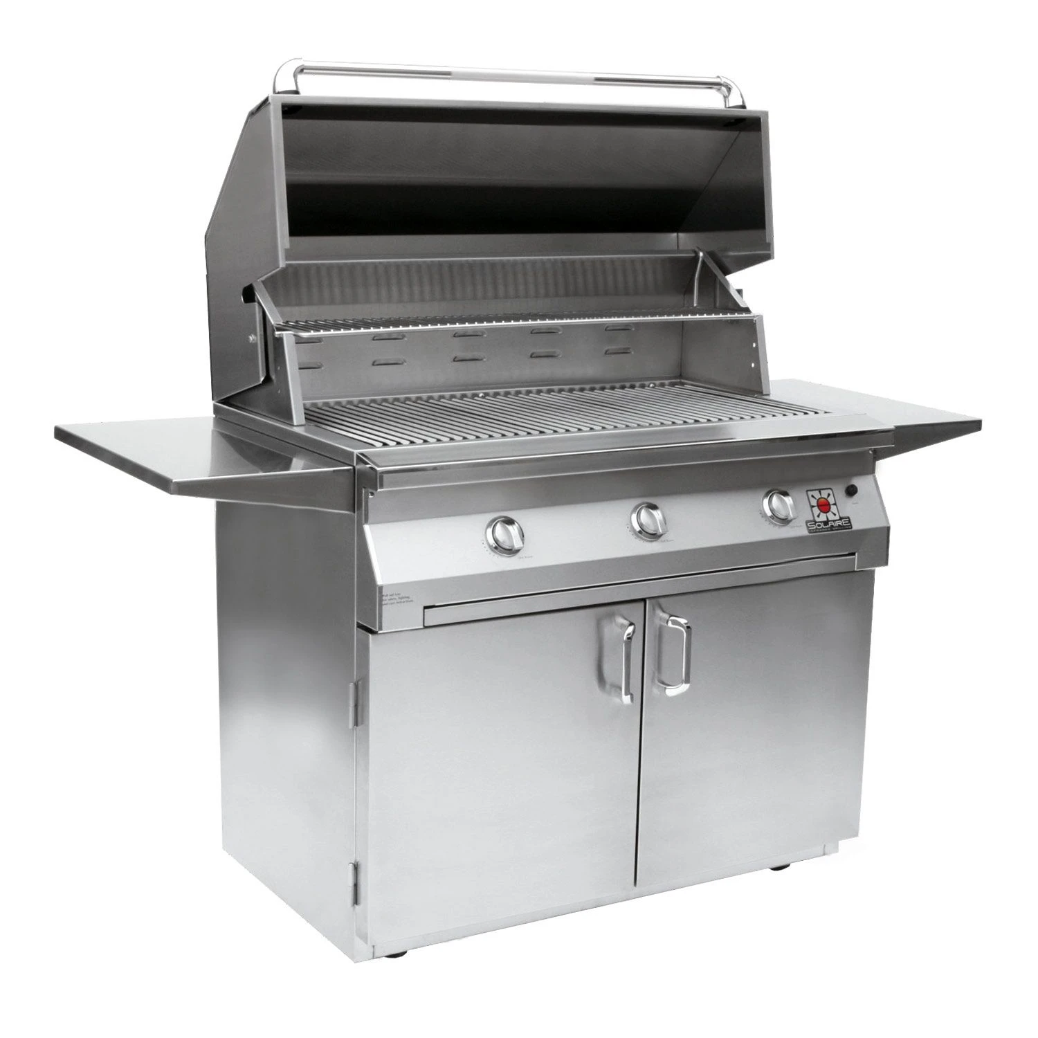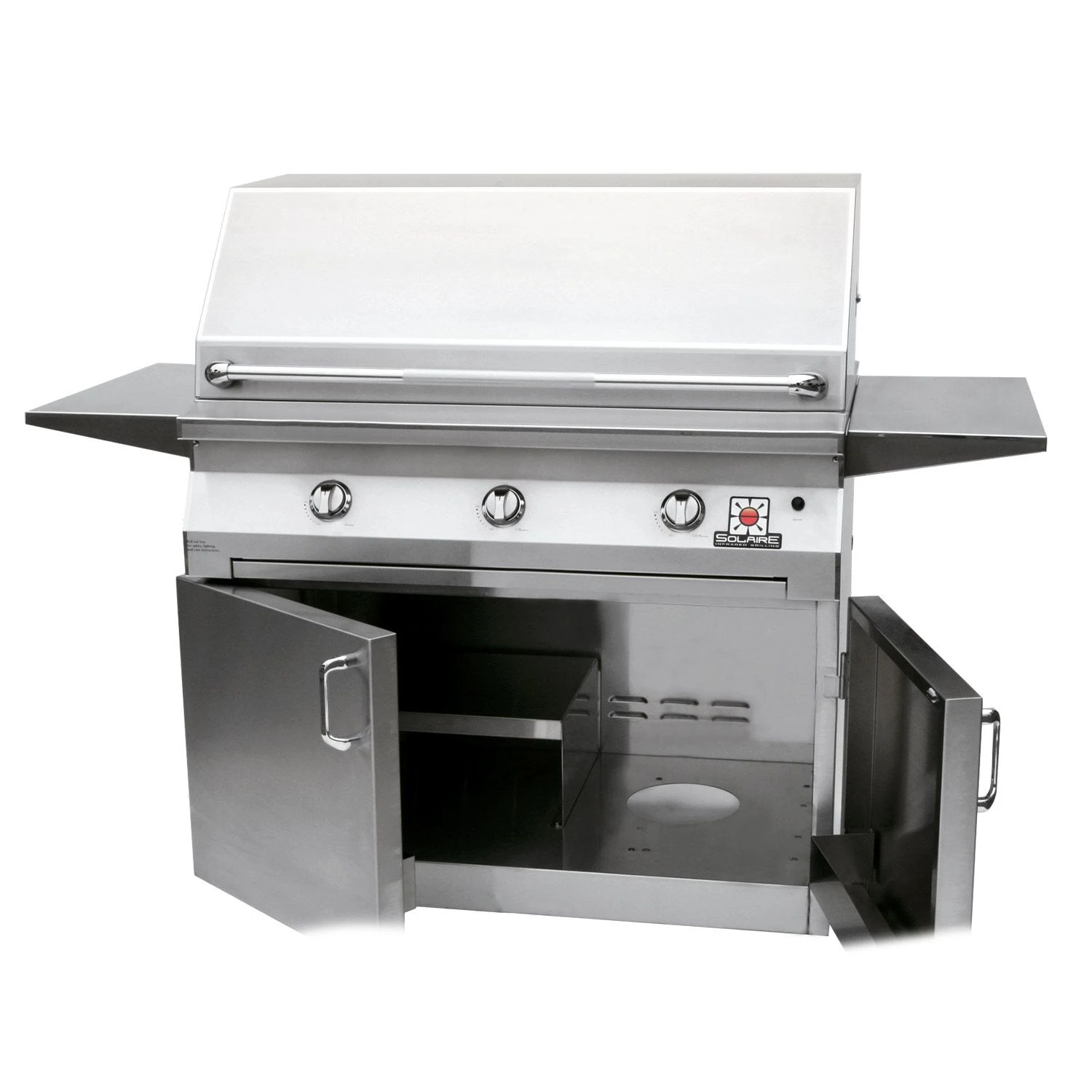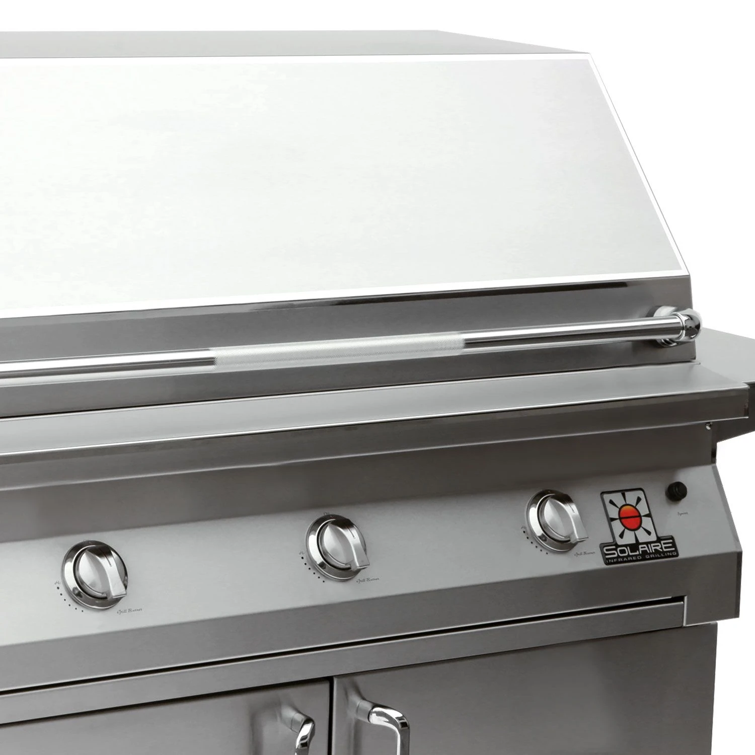 Solaire IRBQ-42 42-Inch Freestanding Grill on 2-Door Cart provides a professional quality infrared grill designed to offer an improved backyard grilling experience. Featuring three main infrared burners capable of up to 82,000 BTU, this grill offers impressive heating ability across 667 square inches of main grilling area and a total grilling area of 1,027 square inches. Select from all infrared, all convection, and InfraVection burner configurations to match your grilling needs. Your grilling experience can be further enhanced with Solaire’s large assortment of grilling accessories engineered to help you grill to your full potential (sold separately). As an added bonus, this grill features a limited lifetime warranty on all stainless steel construction, main burners, and V-grilling grids as well as a two-year warranty on its ignition system and a one-year warranty on nearly all other parts.