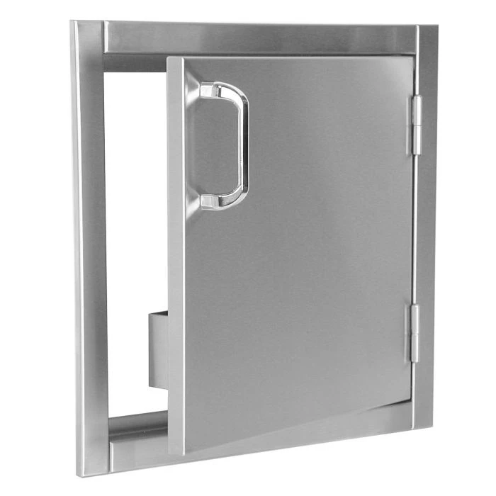 Solaire SOL-FMD-21 21-Inch Flush Mount Single Access Door provides a premium accessory designed to enhance your outdoor kitchen space. This 304 stainless steel access door offers long-lasting performance and a quality appearance designed to perfectly integrate with your Solaire grill. This door features a flush mount design to give your grill island a professional finished appearance. Add convenient storage to your outdoor kitchen with help from Solaire.