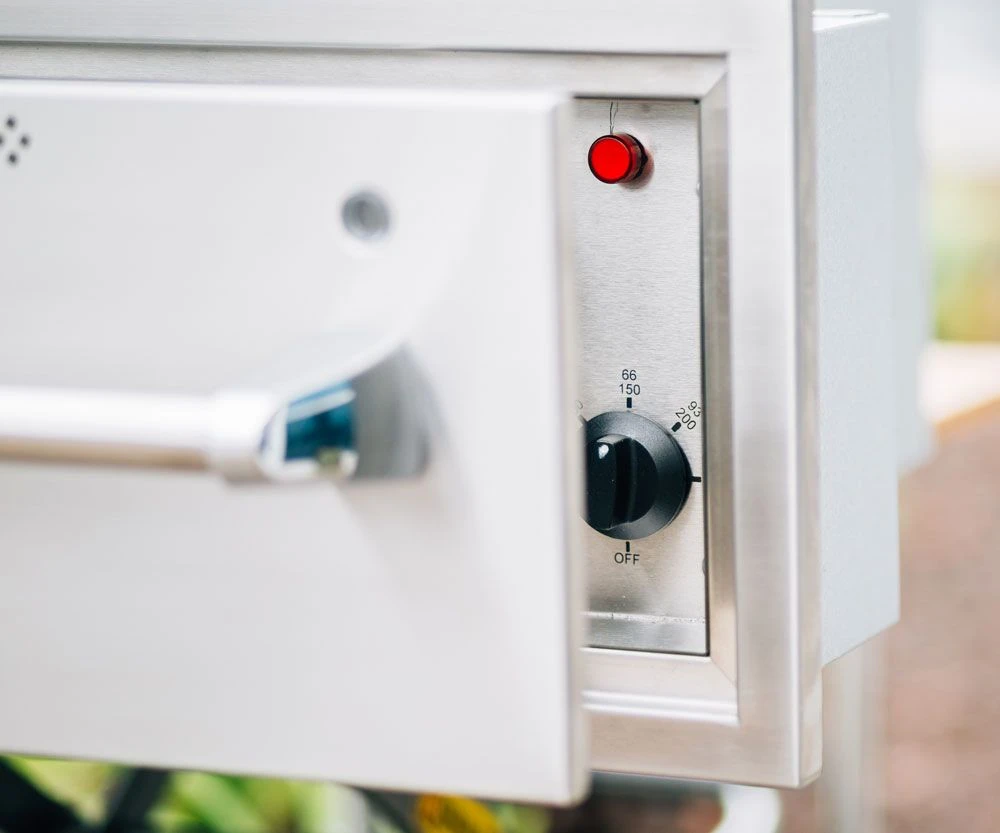 Summerset SSWD-36 Warming Drawer, 36-Inch provides a durable warming drawer for your grill island. The high quality 304 stainless steel construction ensures a long lasting product that is perfect for maintaining heat during the grill-to-plate transition. The drawer makes it possible to store previously grilled food at a desired temperature up to 220°F while the dual adjustable vents provide moisture control. Be sure to complete your outdoor kitchen with everything you need, including the Warming Drawer from Summerset.