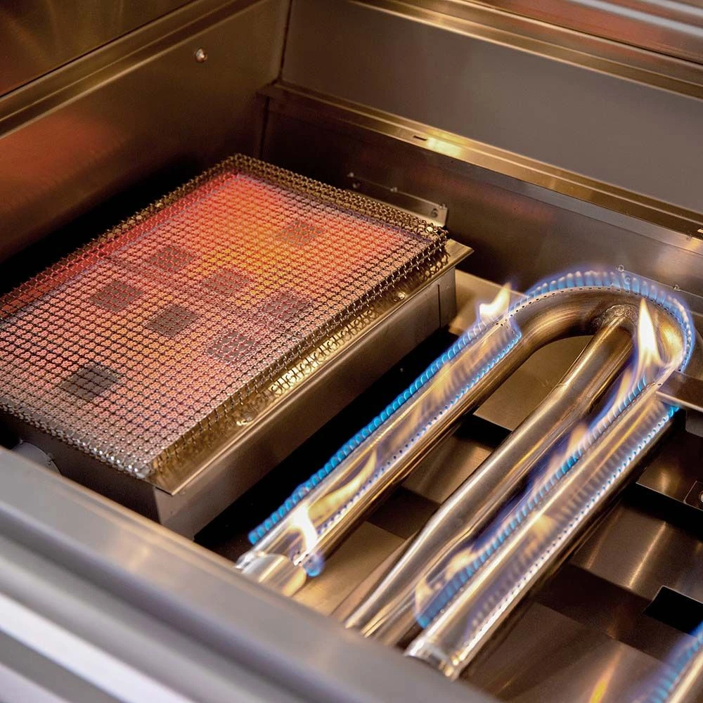- Infrared Back Burner – 15,000 BTU infrared back burner for professional style rotisserie cooking (rotisserie kit included)