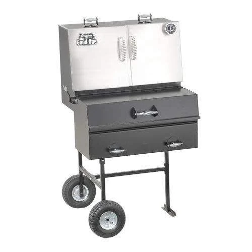 The Good-One The Heritage Oven Generation III Natural Wood Smoker and Grill, Freestanding provides a large sized natural wood smoker that creates real “pit BBQ” flavor. The Heritage Ovenโข stays true to the quality and tradition expected from competition level smokers, while its innovative design ensures even cooking by moving the heat and smoke throughout the 1,199 Sq. Inches of cooking area. The newly designed extended charcoal basket allows for longer burn times, and is also available with a reverse lid design. Elevate your BBQ by returning to tradition – with the natural smokey flavor that only charcoal and wood can deliver!