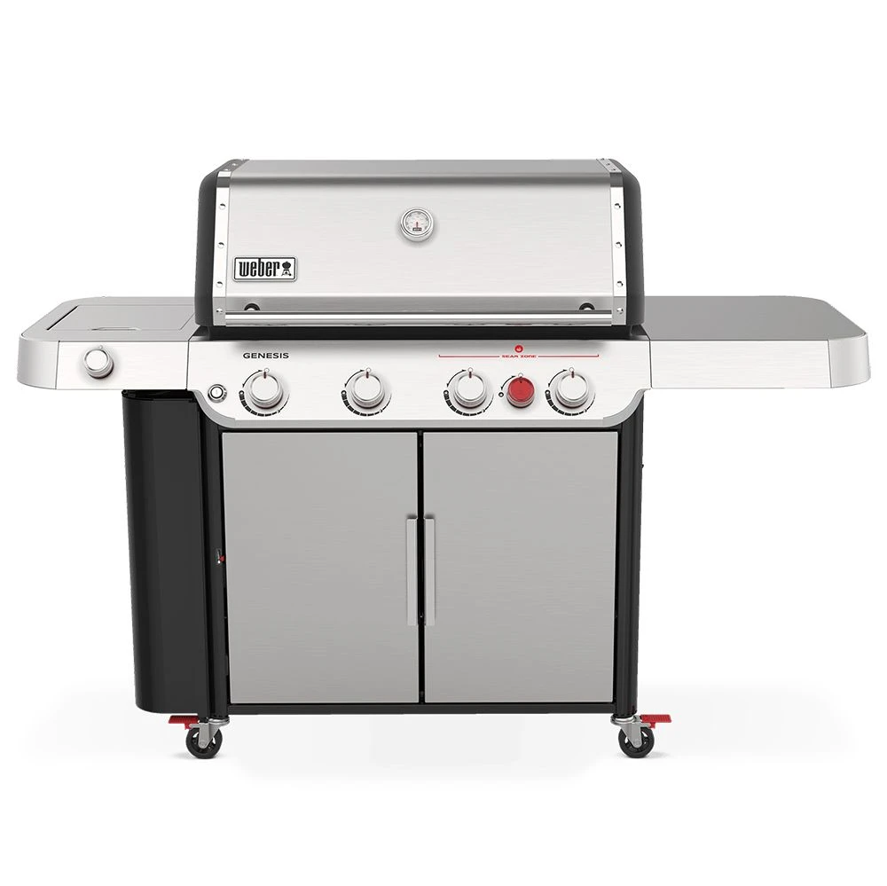 Weber Genesis 4-Burner Freestanding Gas Grill with Sear Burner and Side Burner (WEB-E-S-435) offers an upgraded grilling experience with modern convenience and tech features that are designed to make it a breeze to get great results every time. This gas grill features high performance PureBlu burners and Weber’s largest and hottest sear zone, allowing you to get those deep, rich grill marks that everyone craves. It also boasts a smart side burner, giving you more space to work your magic, and an improved grease management system that makes clean-up a snap. On top of all of that, it also gets all the fundamentals right as well. It features a surprisingly sizeable grilling area augmented with an expandable upper grate for even more flexibility, whether you’re toasting buns or just keeping things warm until dinner time. Finally, it also includes a side mounted locker with room for all your grilling accessories. All in all, the Weber Genesis gas grill is a premium combination of quality craftsmanship and innovative features.